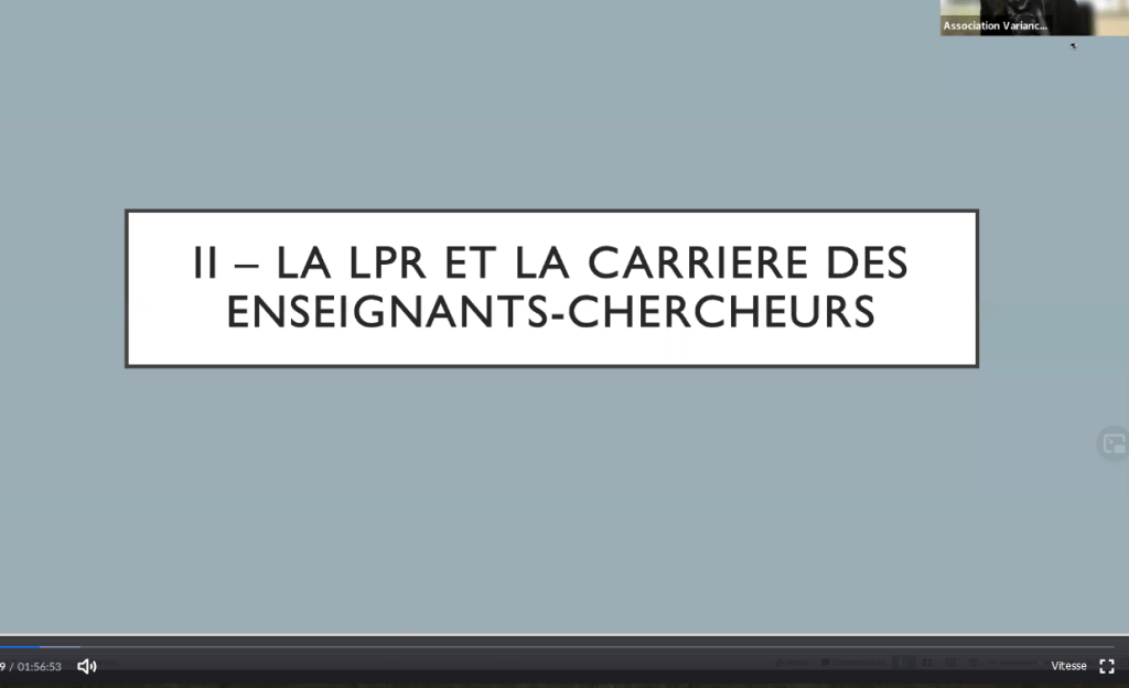 Le Webinaire du 17 mars 2021 La LPR et les carrières des Enseignants-Chercheurs